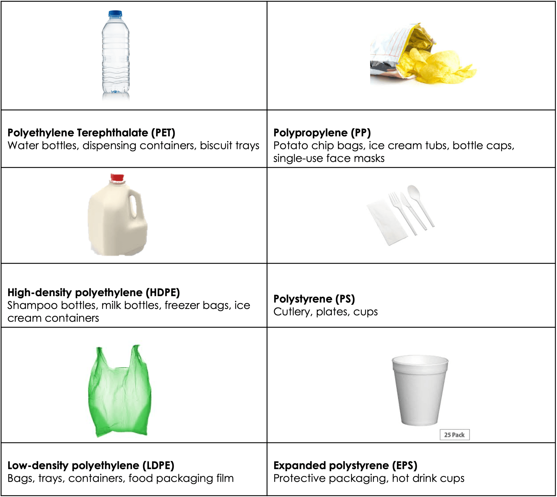 Widely used by the food industry, Polyethylene is the most produced plastic and one of the three plastics most found in the debris of our oceans. This has huge consequences as only only 9% of plastic waste gets recycled. The rest is either burned or dumped. Below we can see a table with some of the most common single plastic use items made of this material.